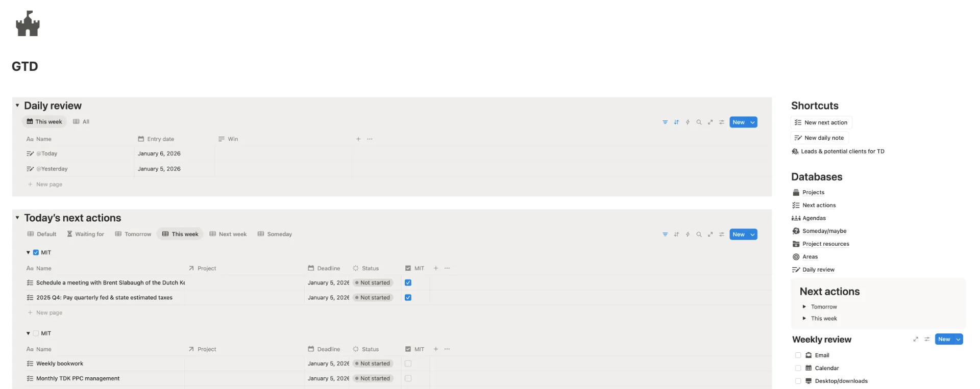Organize my projects and information. It’s my personal and professional resource library. Notion is where my work and personal projects live. I built a GTD-inspired dashboard and you can use it for free if you want. — Reuben